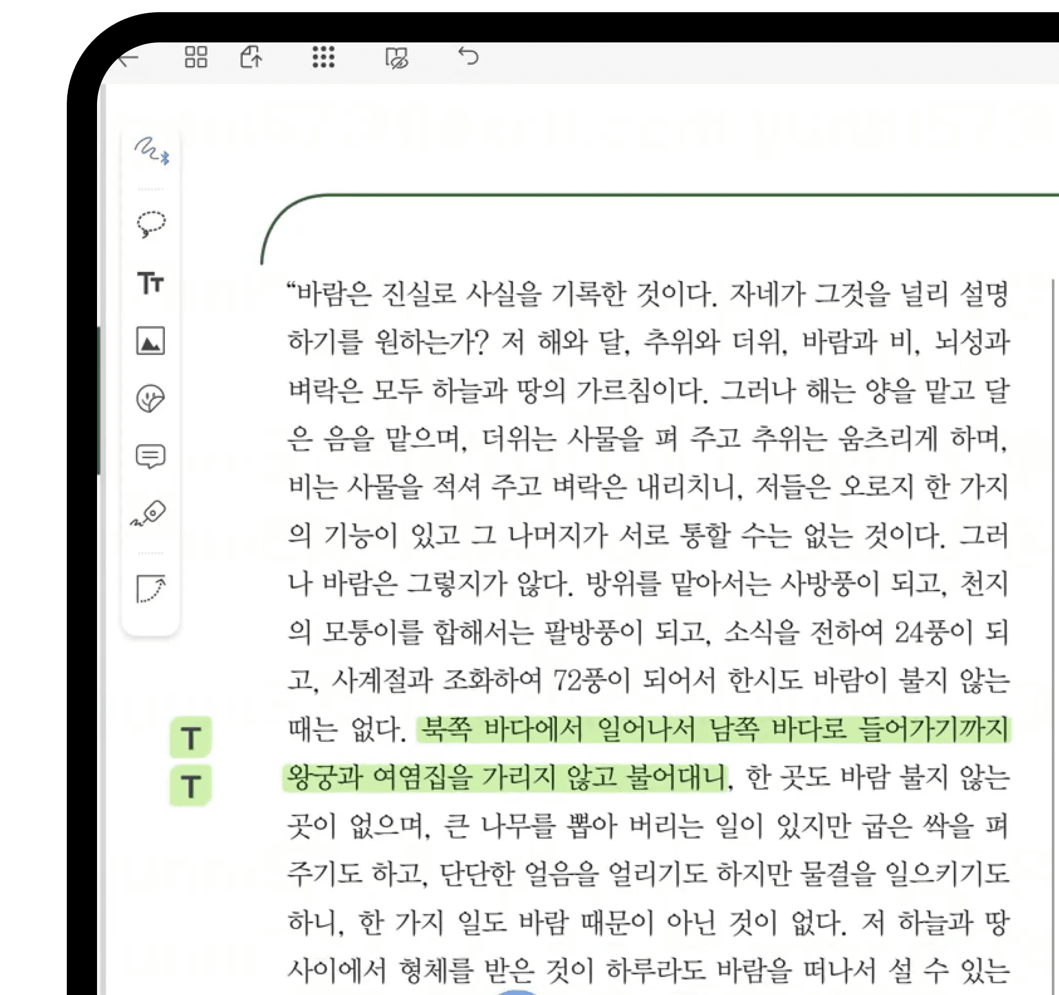 검색은 빠르고, 확대는 선명하고, 하이라이트와 필기는 자유롭게