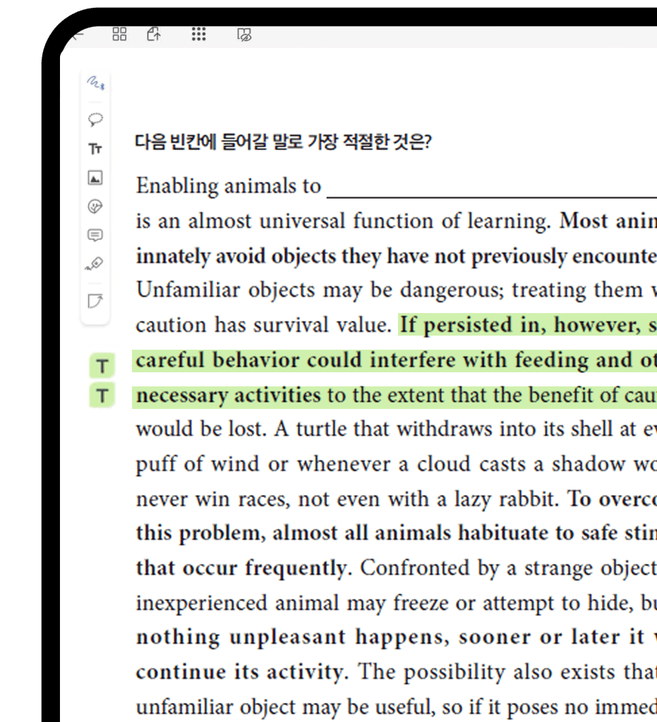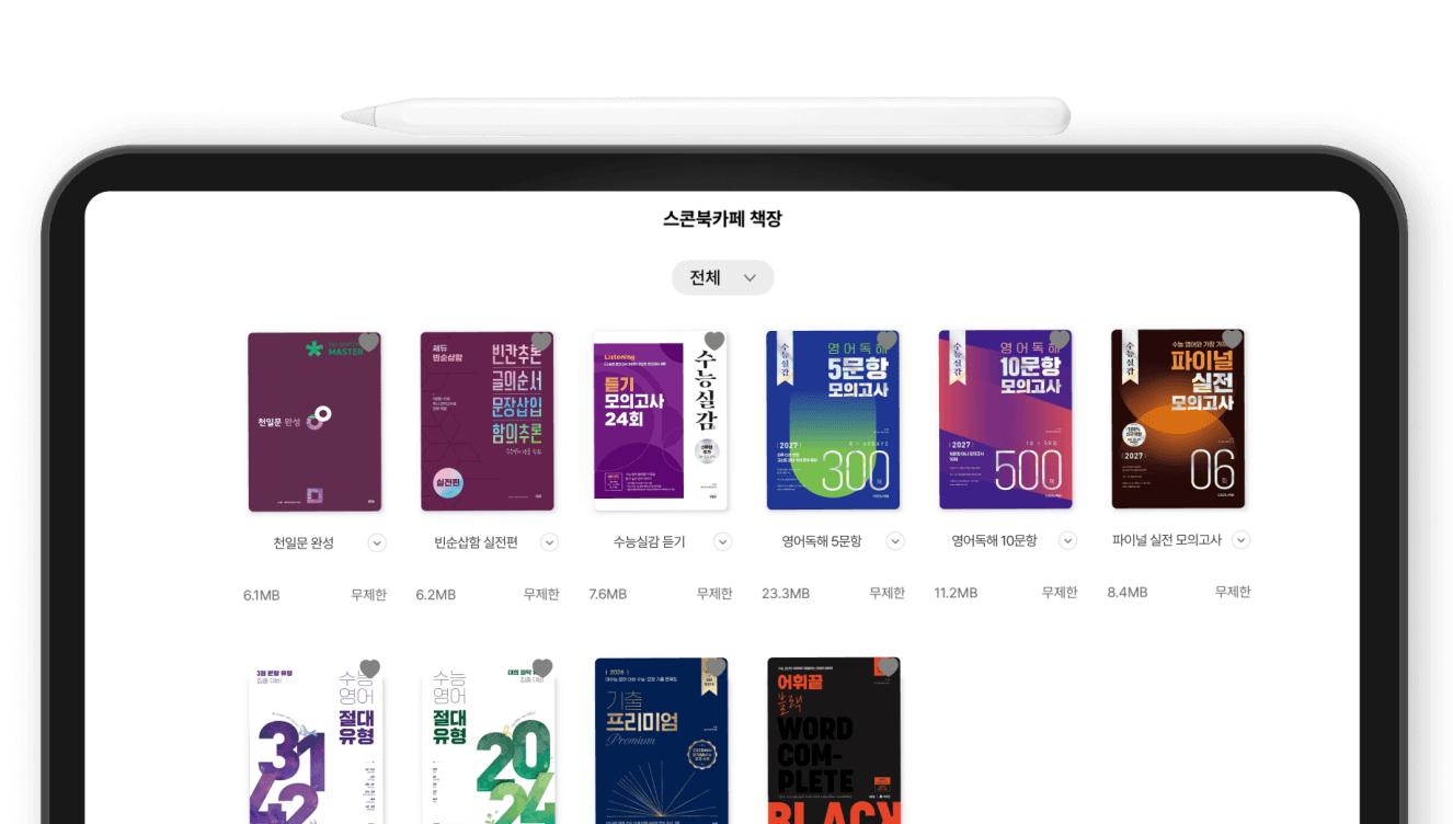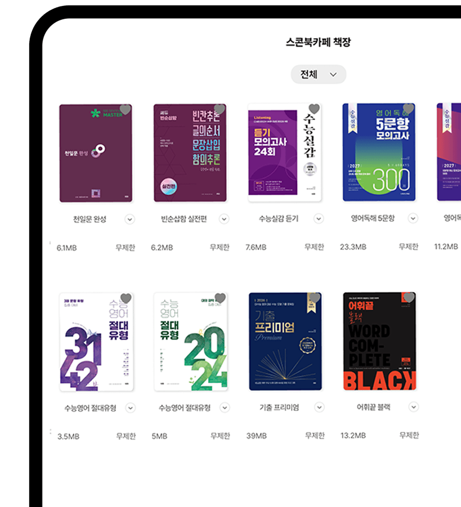교실, 독서실, 카페 어디서든 수능특강, 수능완성 .전 과목 교재를 바로 펼칠 수 있습니다.